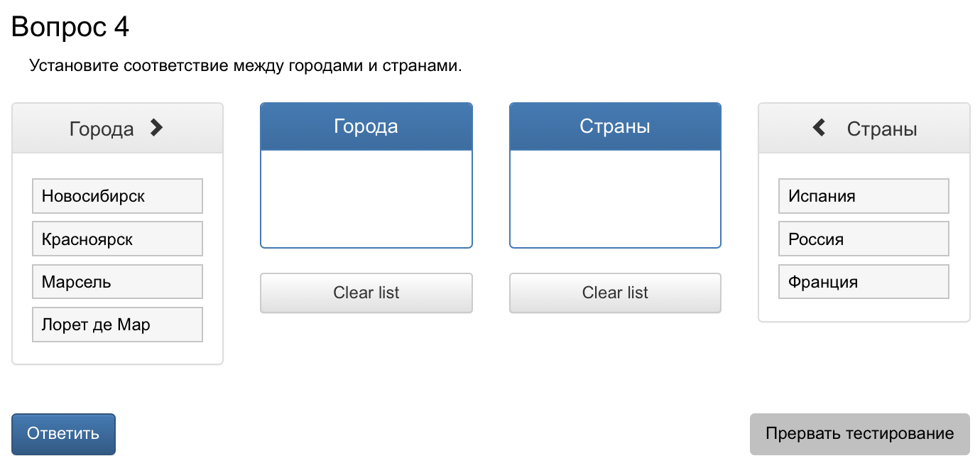 Рисунок 5. Вопрос на соответствие