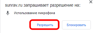 Следует разрешить использование микрофона, нажав на кнопку РАЗРЕШИТЬ.